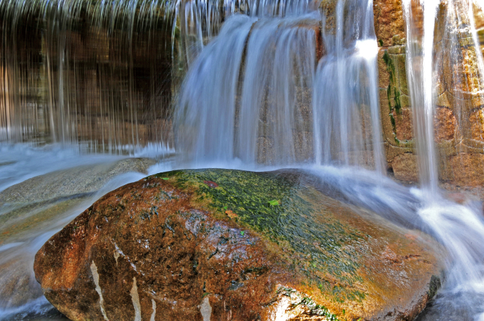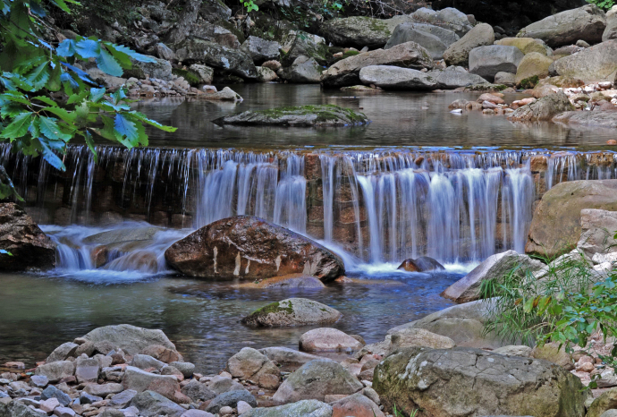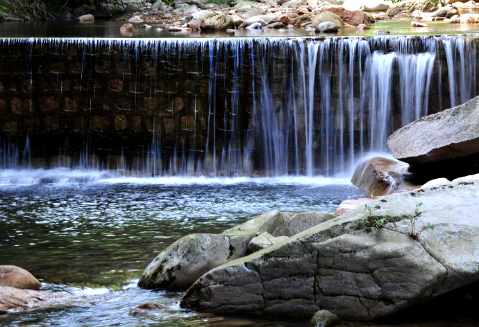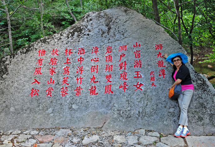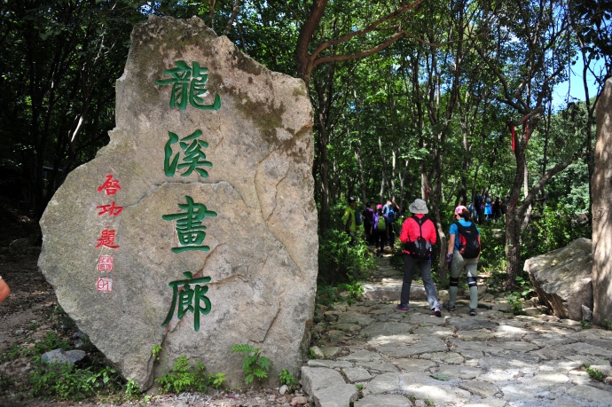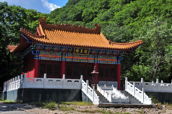 十八灣最精彩的景觀當屬龍?zhí)稙沉恕}執(zhí)短睹娉侍易有螤睿吨袨榫扌褪瘞褪祝狭髦畯膷{谷石縫涌注桃蒂,在潭中旋轉(zhuǎn)片刻,然后自桃尖瀉出,早年稱潭深莫測,現(xiàn)今經(jīng)過人工儀器測出,潭水深8.2米,潭面60多平方米,積水近500立方米;潭水碧綠,清澈見底,晴天有雙月映出奇觀,據(jù)說衛(wèi)星空中曾見到此地有一股紫氣沖天,乃吉祥之兆;潭水甘冽異常,含有多種元素,人飲用益處頗多,用于烹茶,芳香可口。東西兩側(cè)層巖疊障,高15米以上,好似兩門相對,掩護深潭,十分壯觀。